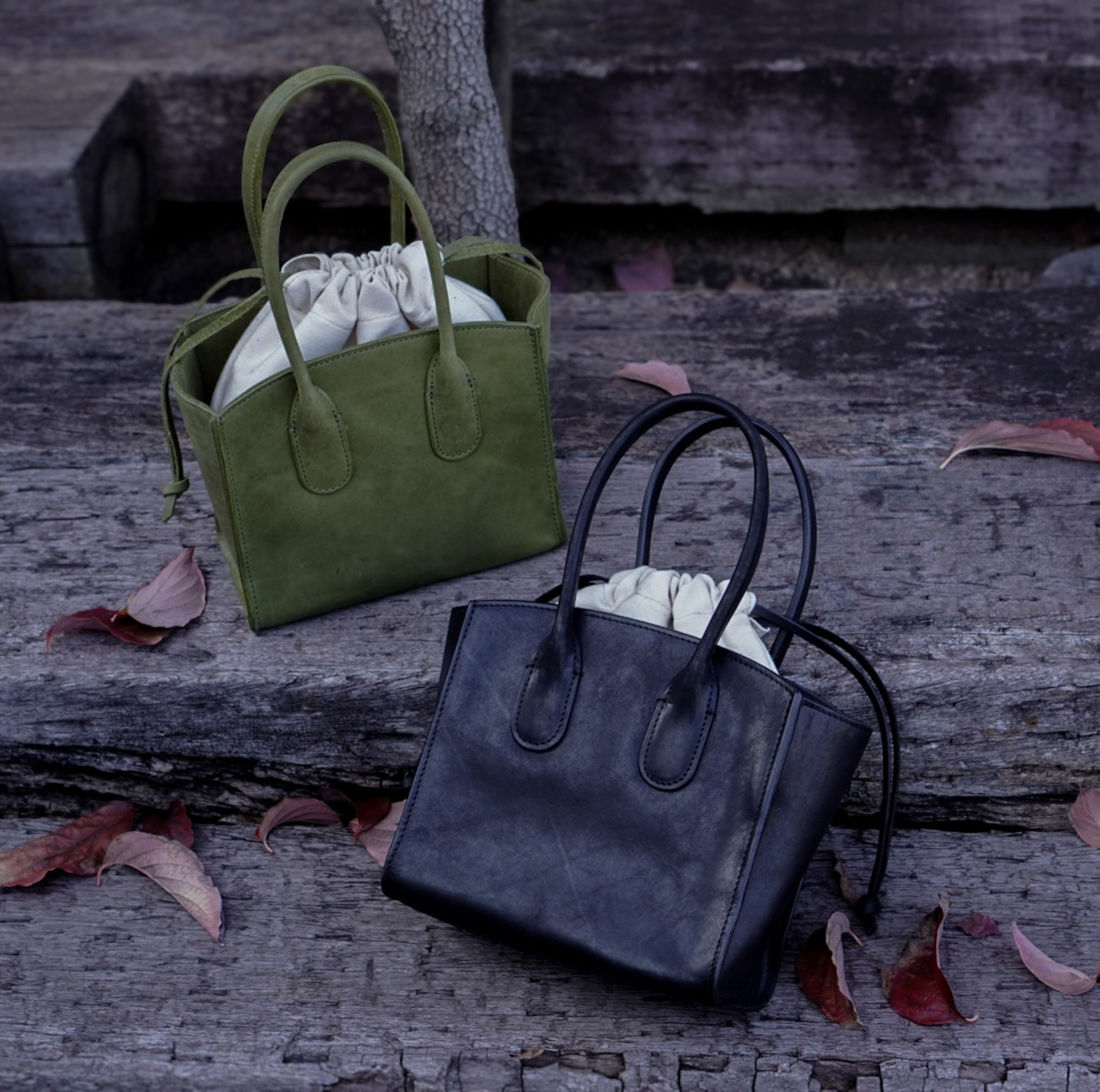 巾着を入れると雰囲気が変わるので、服装に合わせて